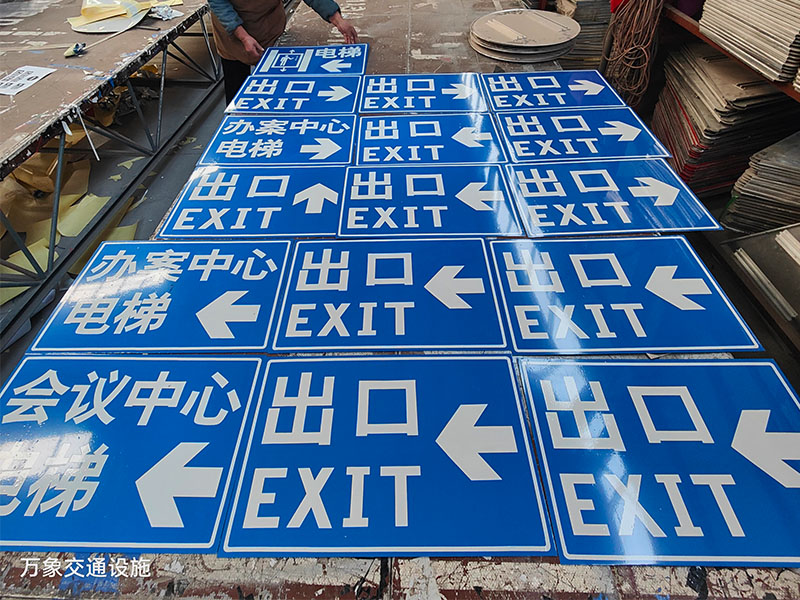 4.指示标志:停车场设施中的指示标志主要设置在停车场的出入口处,是用来正确指示司机从哪进哪出,避免司机“迷路”。另外,停车场设施中的指示标志要求采用反光材料,目的是在夜间也能起到指示作用。